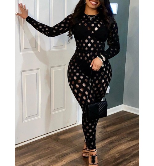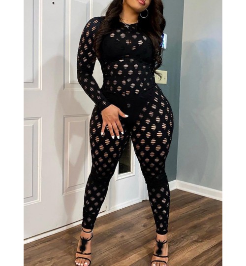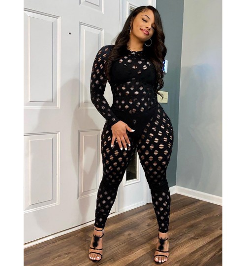 LW SXY Round Neck Pierced Skinny Jumpsuit