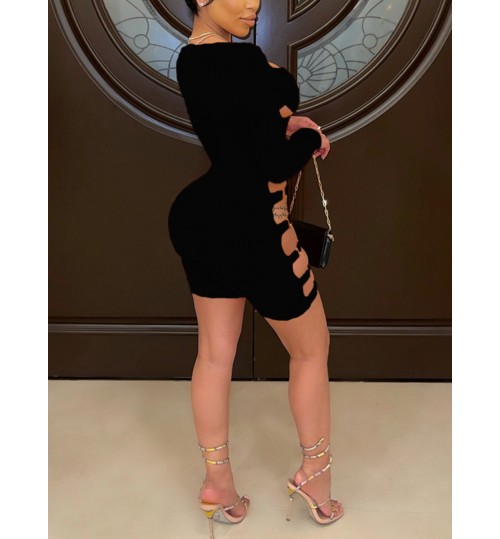 • LW SXY Hollow-out Ring Detail Black One-piece Romper