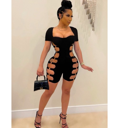 LW SXY Hollow-out Ring Detail Black One-piece Romper