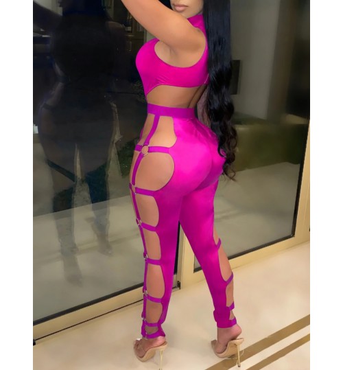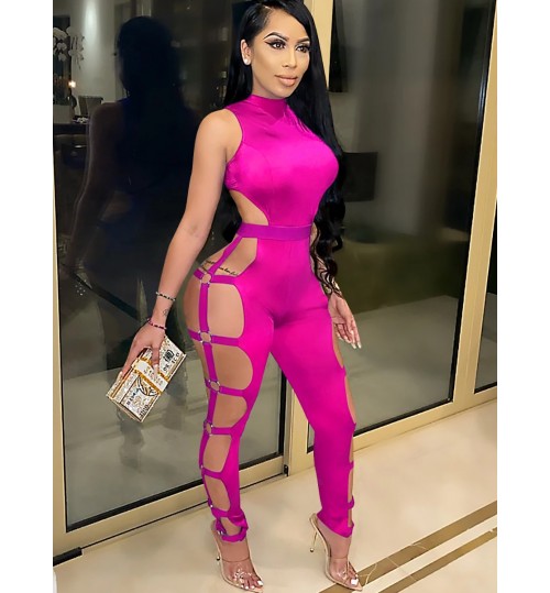 • LW SXY Metal Ring Decor Cut Out Jumpsuit