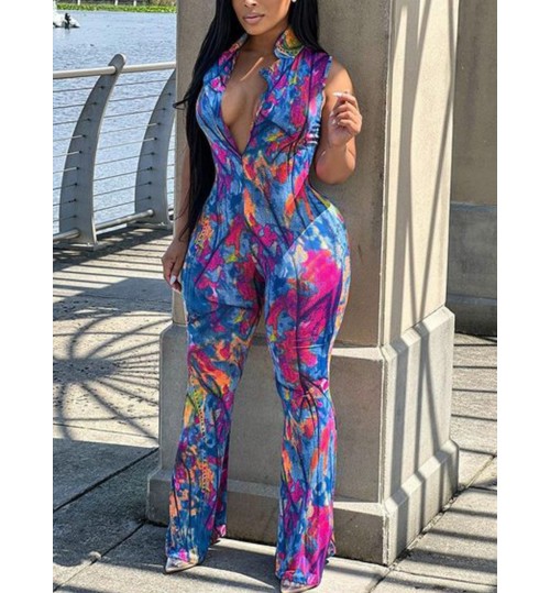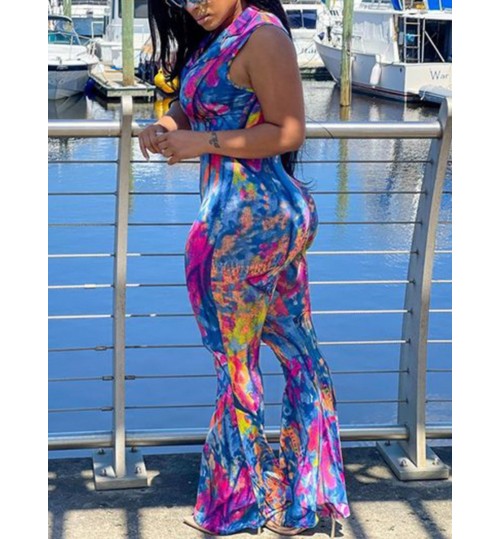 LW BASICS Mixed Print Flared Jumpsuit