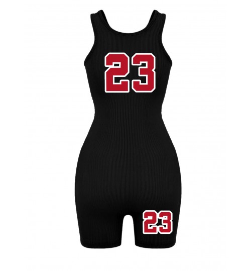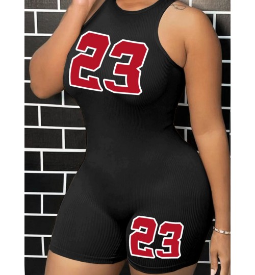 LW Number 23 Print Rib Knit Skinny Romper