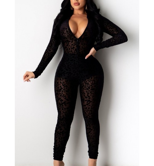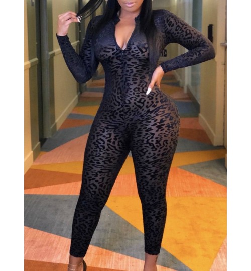 LW SXY Leopard Print See Through Skinny Jumpsuit