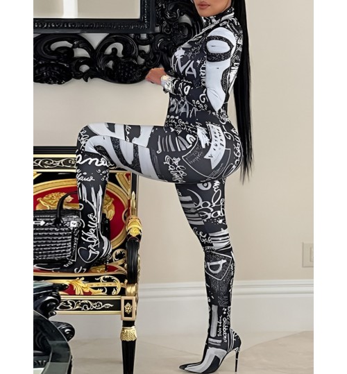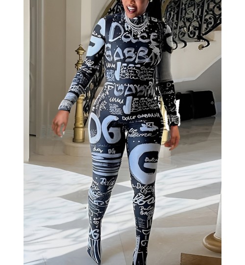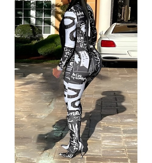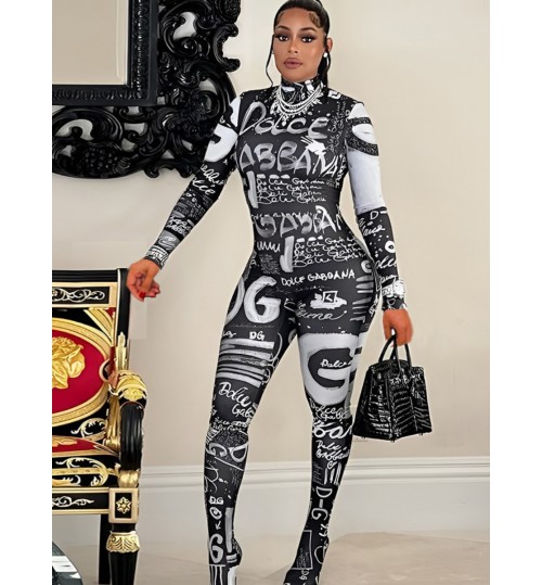 • LW Graffiti Letter Print Skinny Jumpsuit