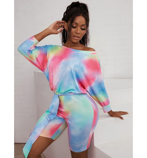 LW Casual Bateau Neck Tie-dye Mutlicolor One-piece Romper