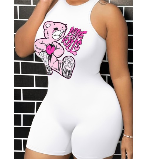 LW Teddy Bear Love Letter Print Romper
