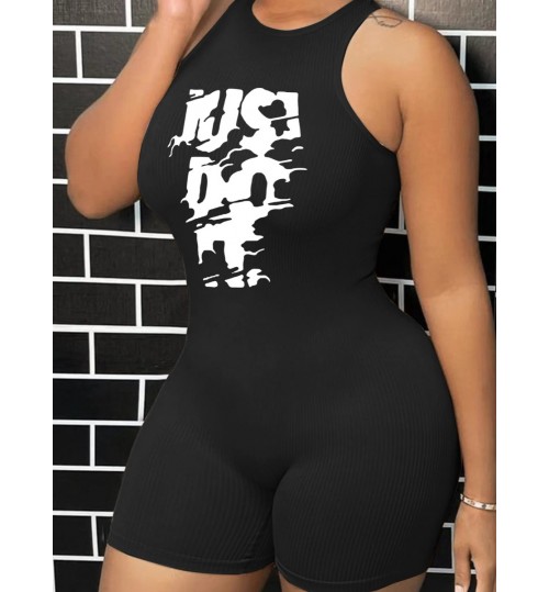 LW Just Do It Letter Print Rib Knit Romper