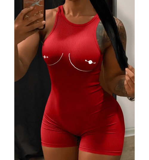 • LW Rib Knit Print Skinny Cami Romper
