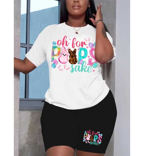 LW Plus Size Cartoon Letter Print Shorts Set