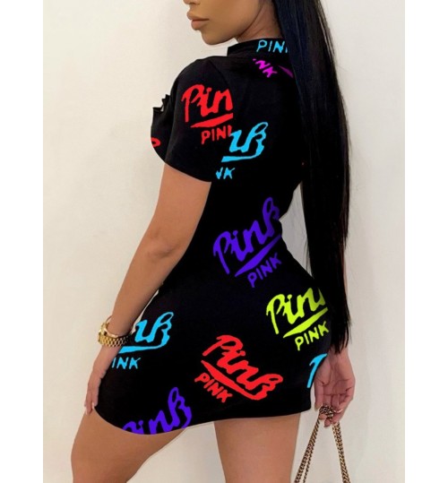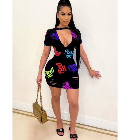 LW SXY Plus Size Letter Print Cut Out Bodycon Dress