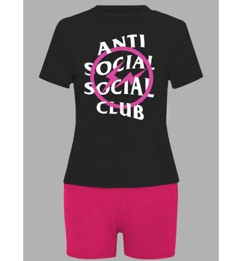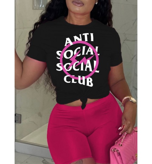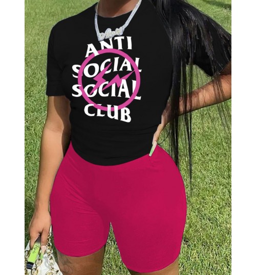 LW Plus Size Social Letter Print Skinny Shorts Set
