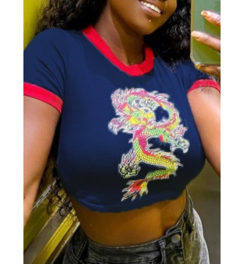 LW Plus Size Dragon Print Crop Top T-shirt
