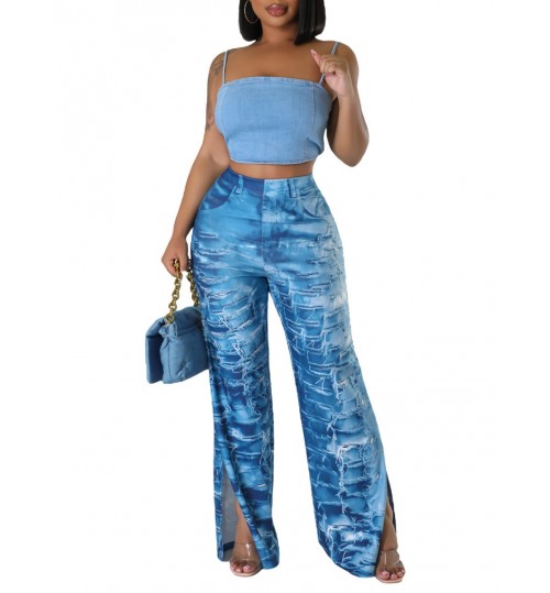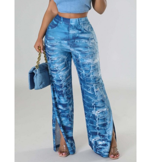 LW High Waist Print Side Split Pants