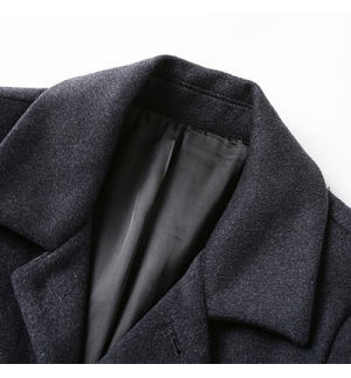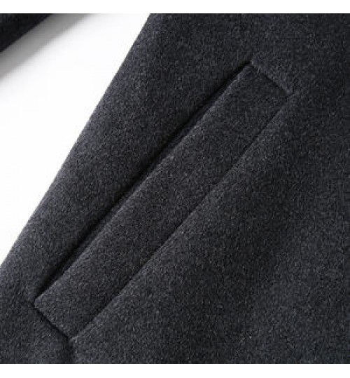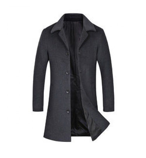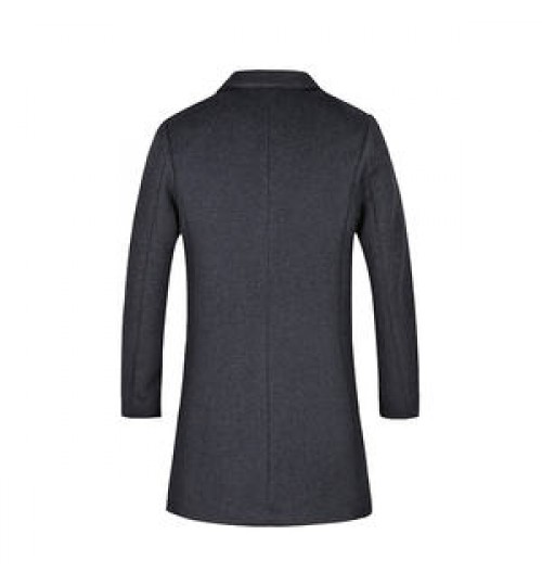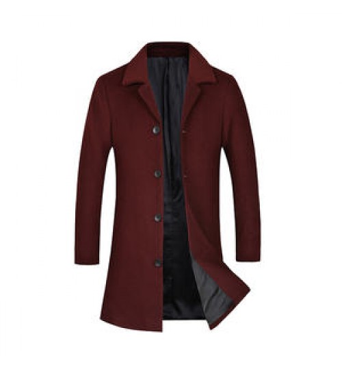 Men's Coat High Quality Men's Casual Trench Solid Color Casual Wool Coat Single-breasted Blend Jacket