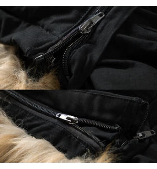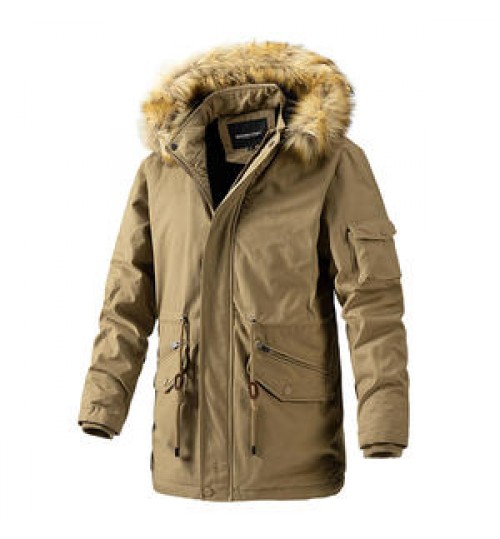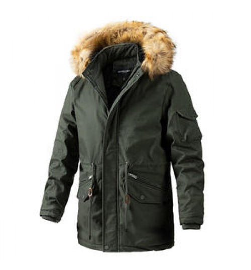 Winter Thicken Warm Soild Color Casual Streets Cold-Proof Jacket,Men's Fur Collar Parkas Coat