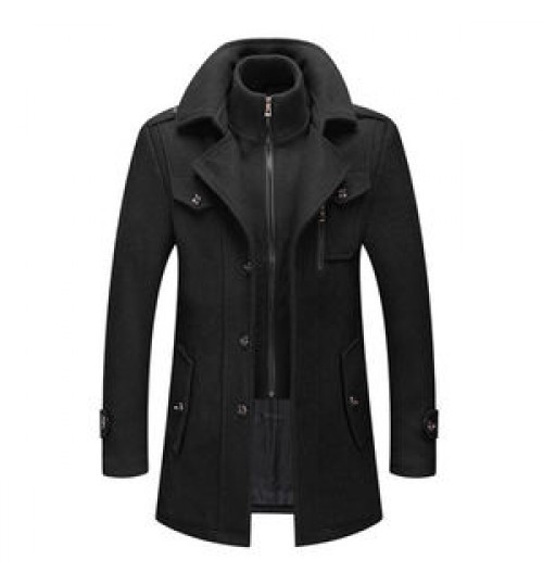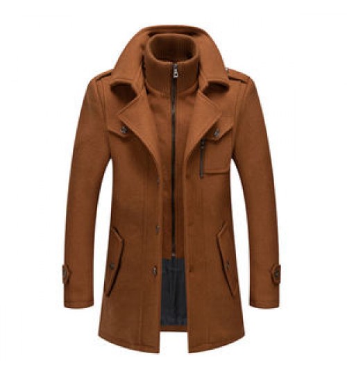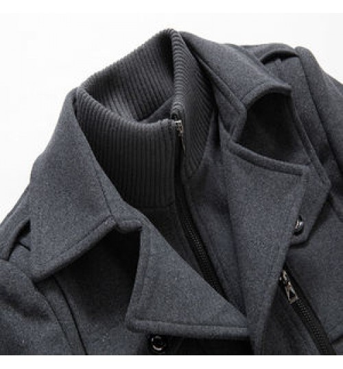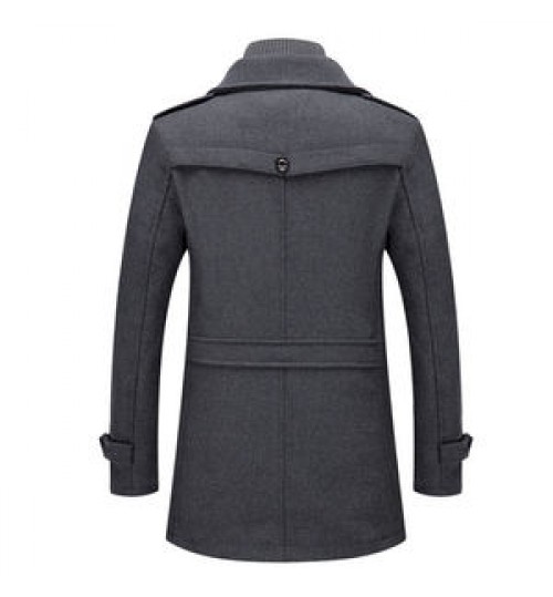 New Men Wool Blends Coats Autumn Winter Solid Color Cold Resistant Men Woolen Overcoat Double Collar Casual Trench Coat Male