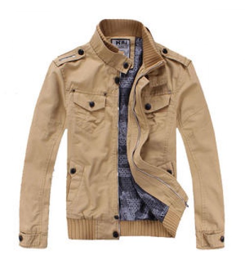 Fashion style men's slim fit washed cotton army green military casual jacket for men