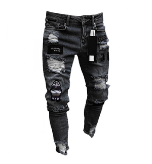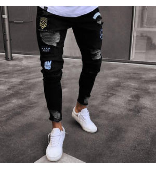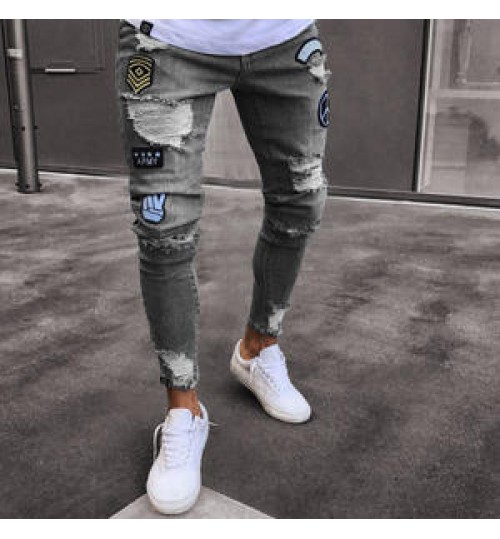 Product Name New Italy Style Men's Distressed Destroyed Badge Pants Art Patches Skinny Biker White Jeans Slim Trousers