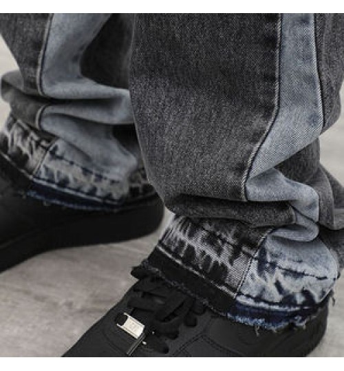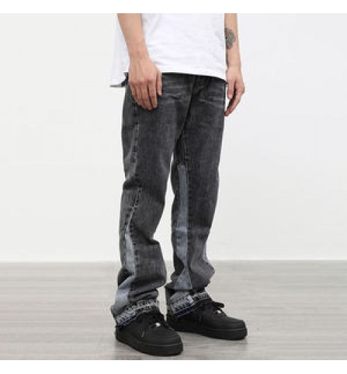• DiZNEW Custom Summer New Design Men Flared Jeans Patchwork Loose Hip Hop Denim Pants Washed Jeans