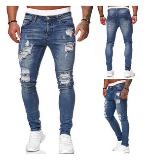 Factory Directly Wholesale Designers Pantalones Blue Jeans Mens Ripped Skinny Stretch Denim Pants Slim Men's Jeans