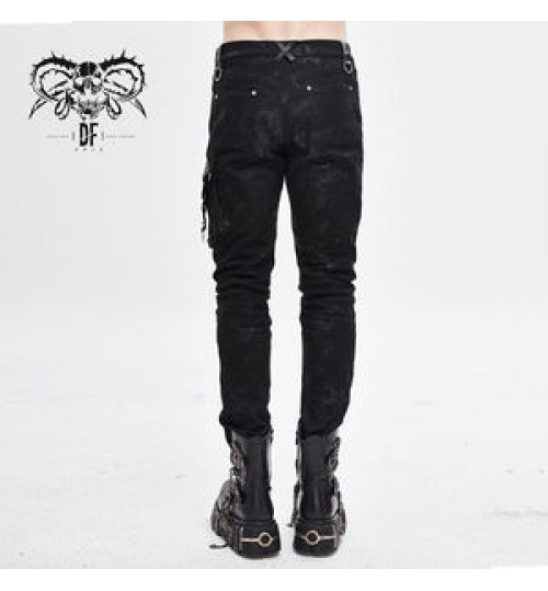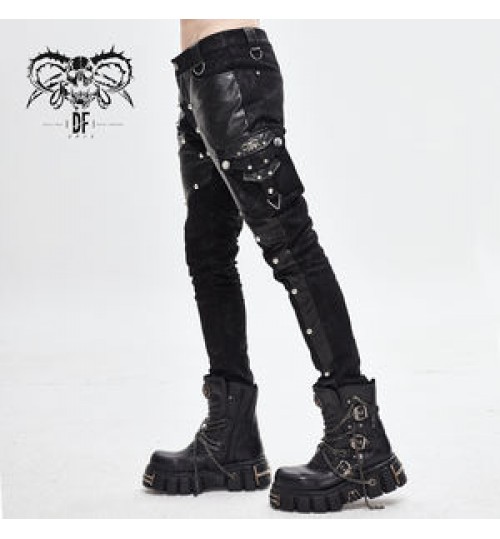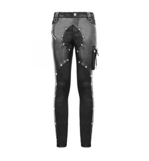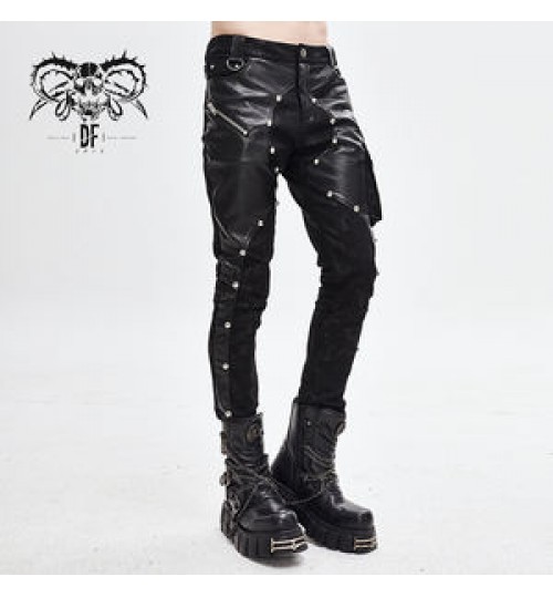 PT115 Devil fashion leather patchwork asymmetric nailed Punk rock men trousers with pocket