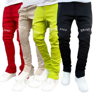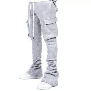 Custom 100% cotton high quality Casual men's with pocket Jogger Track Pants drawstring Elastic Waistband Stacked pants for men