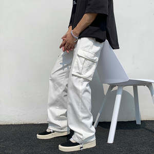 Black/white Casual Pants Men's Fashion Loose Straight Wide Leg Pants Men Streetwear Hip-hop Pocket Cargo Pants Mens Trousers