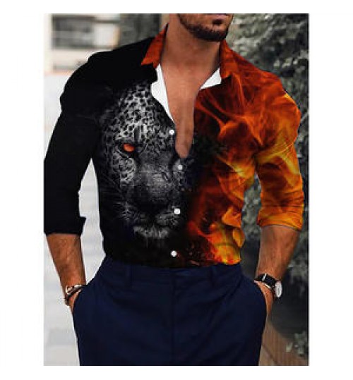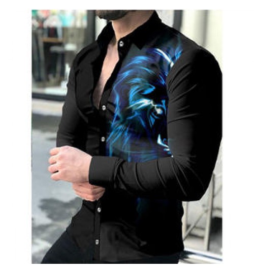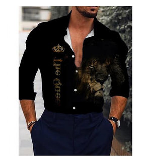 • Custom LOGO Lion Printed Men's Shirts 2022 New Fashion Long Sleeve Shirt Plus Size Single Button Turn Down Spring Men Clothing
