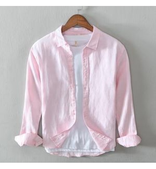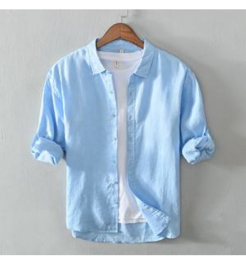 100% hemp linen fabric shirt。The pressure line is beautiful and flat