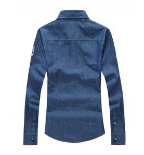 New Fashion Men's Autumn Long Sleeve Shirt Cowboy Slim Shirt