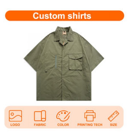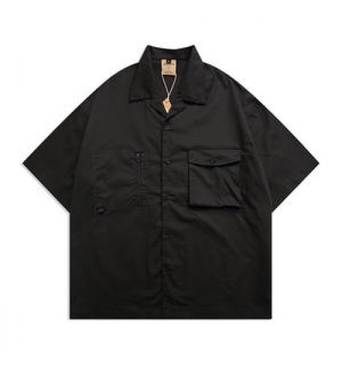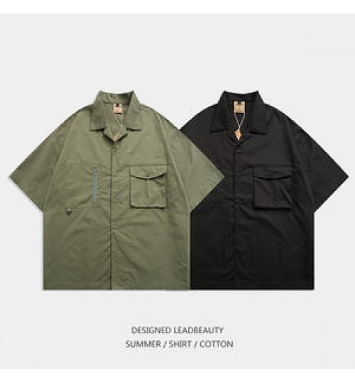 Men's Summer High Quality Shirts Cotton Mens Double Pocket Half Sleeve Outdoor Work Camp Collar Shirt