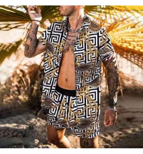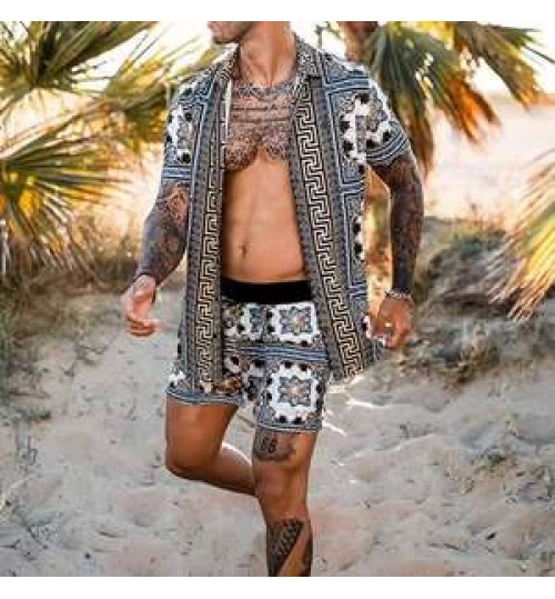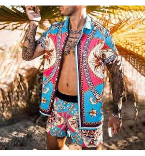 Summer beach shirt for men loose shirt Hawaiian men's shirts print suit