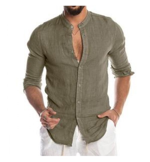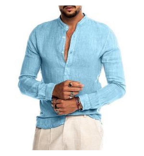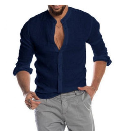 • 2022 Amazon Hot Style Autumn Casual Shirts For Men V-neck Men Long Sleeve Shirt Linen Cardigan Stand-collar Button Up Shirts Men