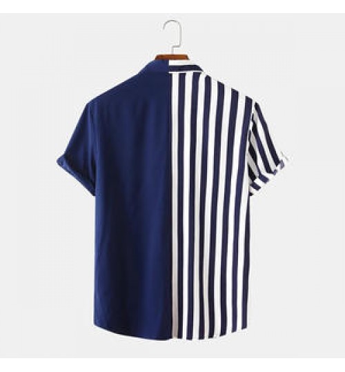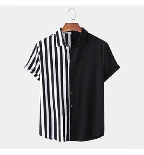 • Coldker Mens Clothing 2021 Summer New Men's Short-sleeved Shirt Black and White Stripes Fashion Simple Camisas Para Hombre
