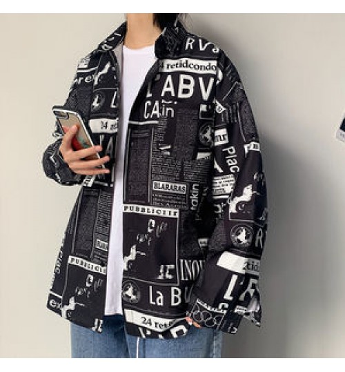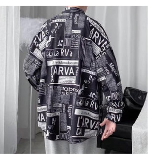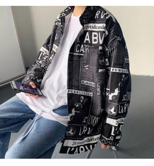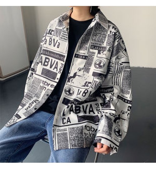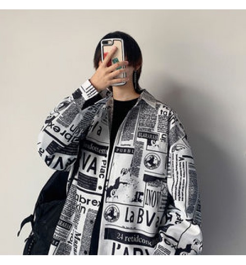 • Spring Summer Fashion Man Long Sleeve Print Newspaper Shirt Men's Shirts Top Boys Loose Casual Shirt Men Plus Size 3XL