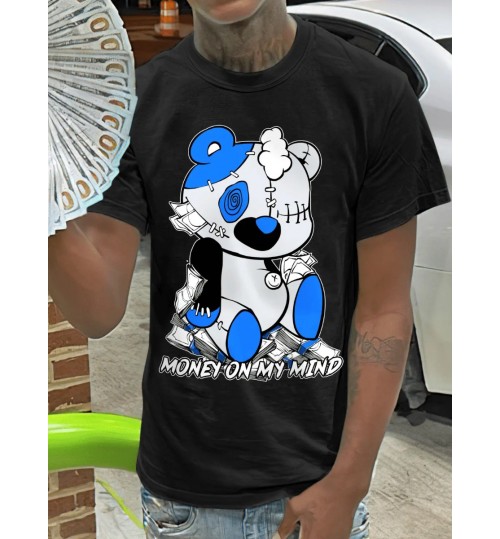 • LW Bear Men Cartoon Letter Print T-shirt