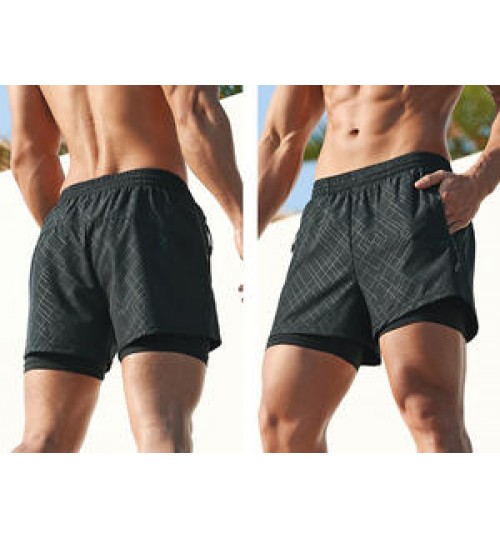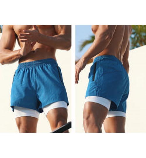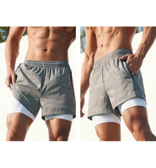 2 in 1 Quick dry Polyester Compression Mesh Liner Running Athletic Gym Sport Men's Workout Shorts