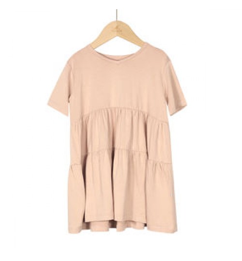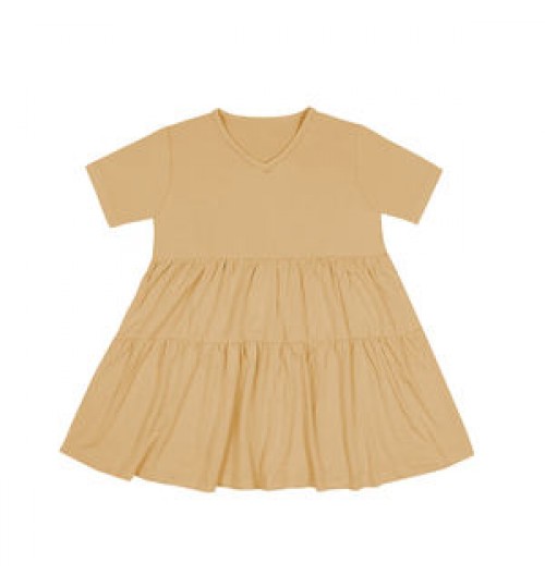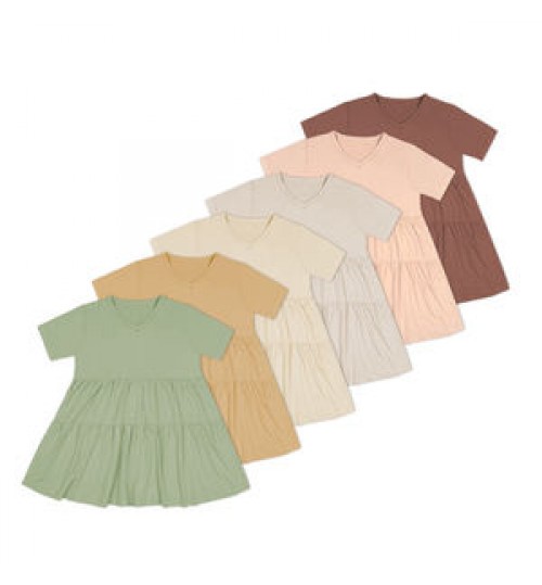 Custom design solid color short sleeve tiered bamboo summer baby girl dresses