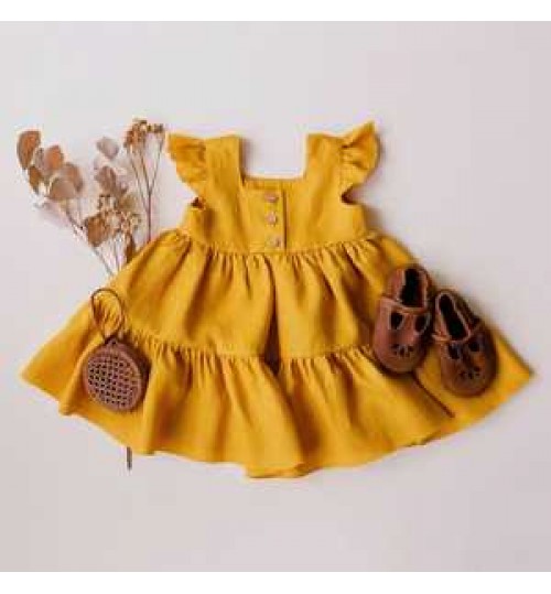 1 year baby girl summer dresses linen cotton ruffle slip dress pleat dresses