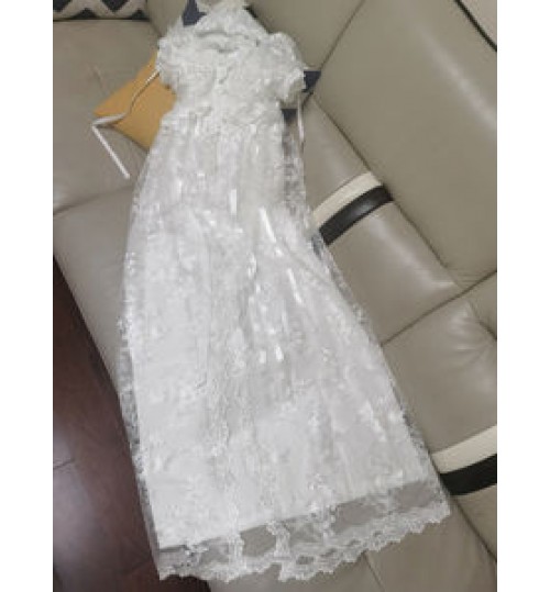 Boutique Soft New Born Baby girl lace party dresses white first communion christening gown infant baptism dress