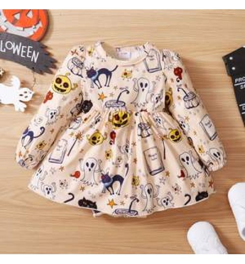 • 2022 New Spring Baby Dress Kids Clothing Hallowmas Girls Girl Printed Skirt Children Wears Girl dress