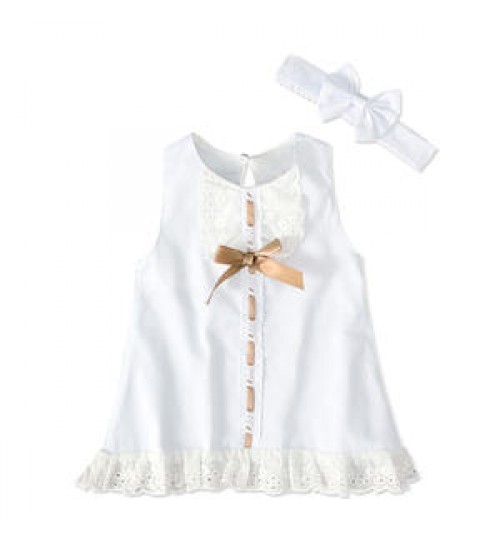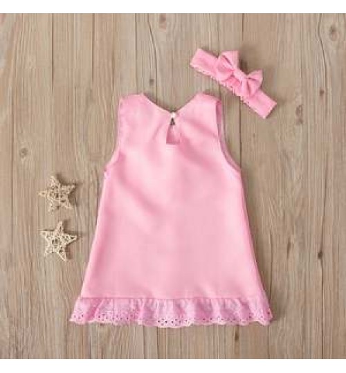 • 1166 Summer Newborn Toddler Baby Girls Clothing Tutu Dress Cotton Girls Sleeveless Princess Birthday Party Dress+Headbands 2PCS