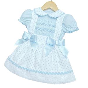 Baby Girl Blue Smocked Frilly Skirt Infant Baby Dress Kids One Piece Boutique dress