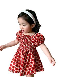 Baby Princess Dress Summer Short Puff Sleeve Square Collar Smocked Dress Girls Infant Floral Dresses