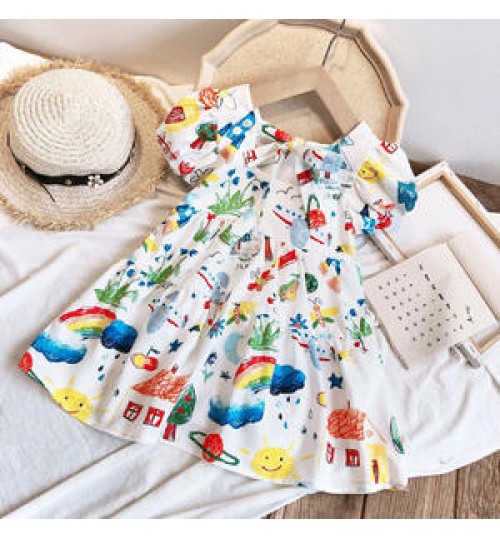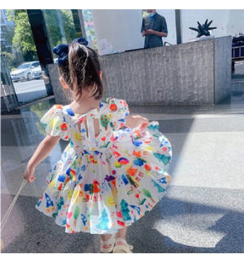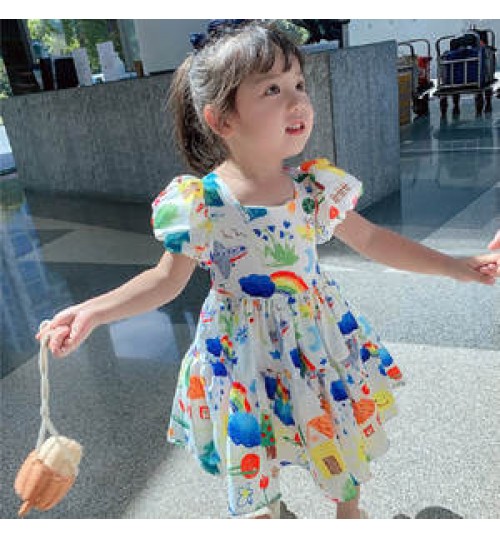 Baby Girls Princess Dresses Toddler Sleeveless Flowers Print Dress Girl Skirt Color Bubble Sleeve Dress Princess Skirt