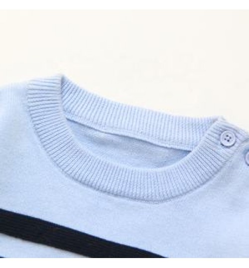 Boys Jacquard Knit Sweater Long Sleeve Round Collar Striped Sweater Baby Cotton Pullover Sweater