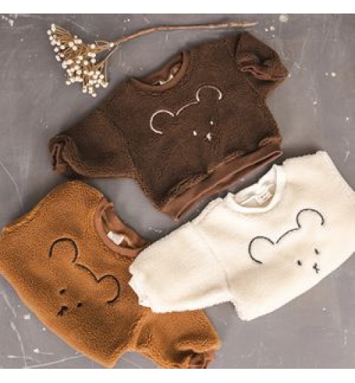 Lamb Fleece Cotton Baby Clothing Customized Baby Top Bear pattern Design Baby Sweater