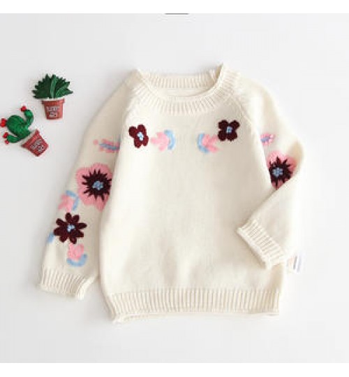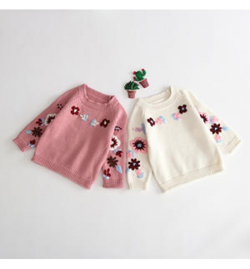 Hand-embroidered Hook Flower Knit Sweater Baby Girl Cute Sweater