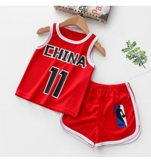New Kids Boys Sleeveless Basketball Jersey Summer Clothing Sets Children Two Piece Vest +Shorts Clothes Set for Sport Wear