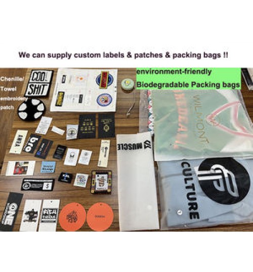 We can add customized woven labels , printed labels , wash labels , hang tags for your clothing .